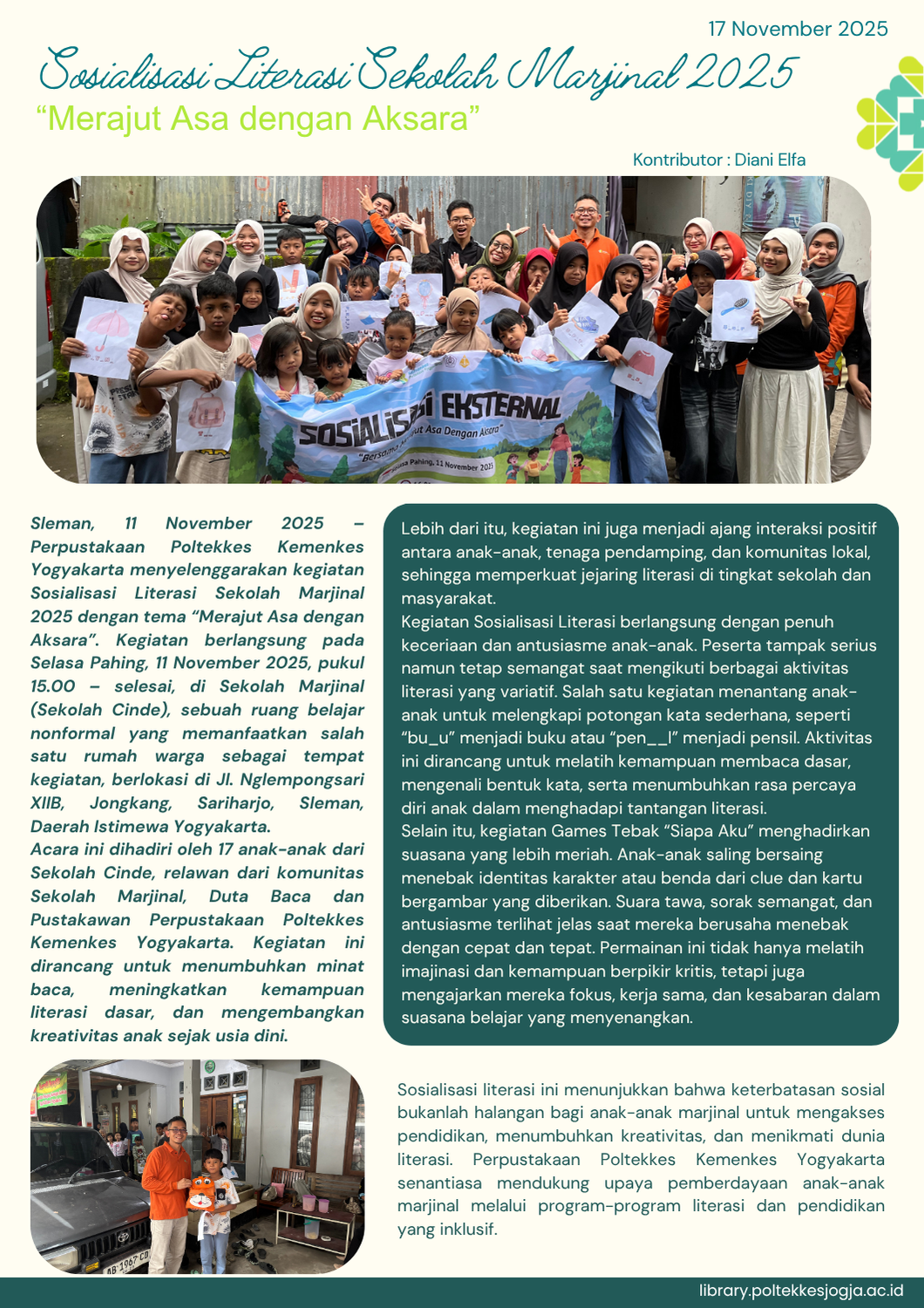 Perpustakaan Poltekkes Kemenkes Yogyakarta telah mendapatkan akreditasi A dari Perpustakaan Nasional Republik Indonesia tahun 2022
