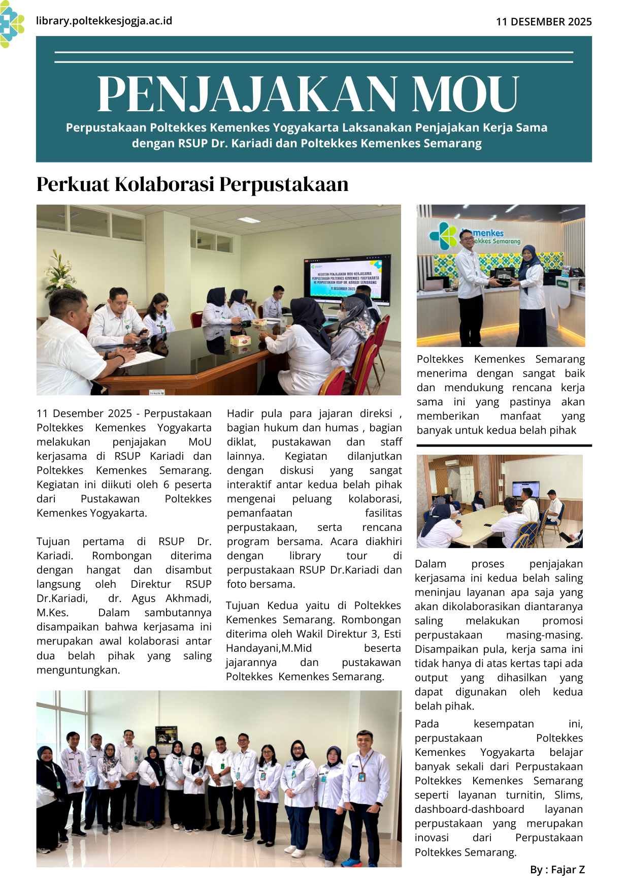 Perpustakaan Poltekkes Kemenkes Yogyakarta melakukan Penjajakan MoU di RSUP Dr. Kariadi dan Poltekkes Kemnenkes Semarang,